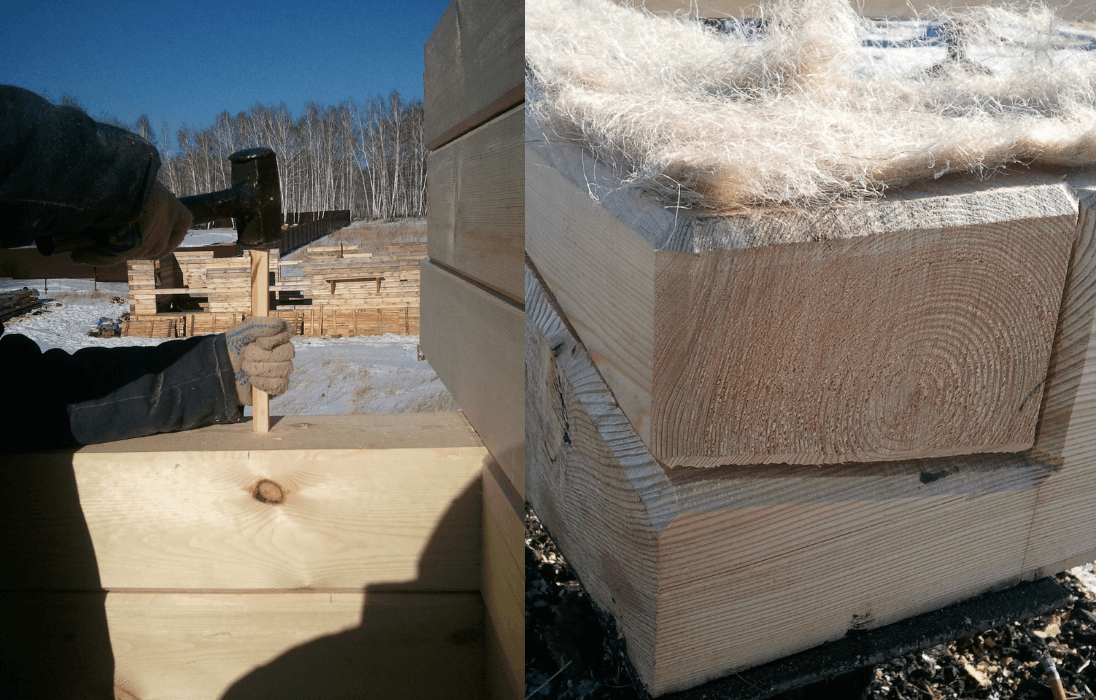 Используем заводской межвенцовый утеплитель Джут New, который имеет плотную структуру, упругость, не гниет и не разрушается временем